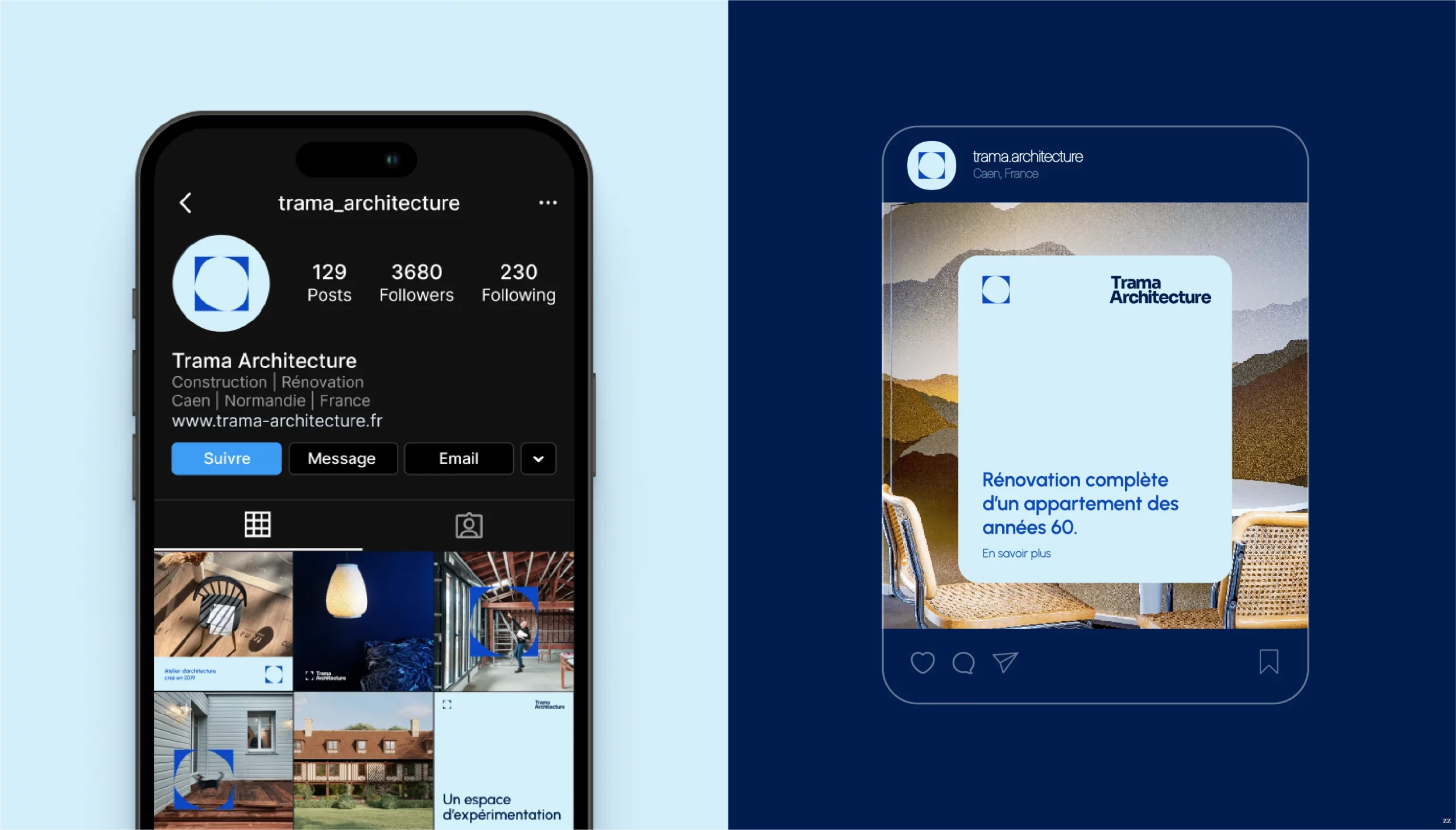 En découvrant Trama Architecture, j’ai été séduit par leur équilibre entre rigueur et poésie. Cette refonte traduit cette dualité à travers une identité sobre, intemporelle et moderne.